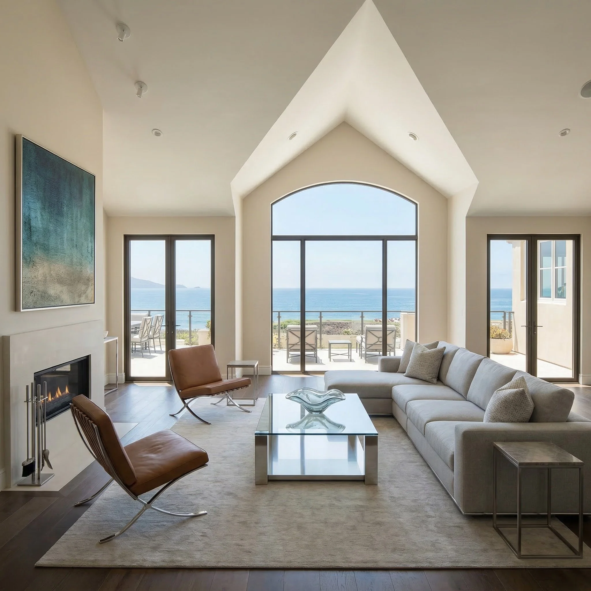A private courtyard entry leads into expansive interiors, where walls of glass frame sweeping golf course and ocean views—from Pescadero Point across Stillwater Cove to Carmel Beach and Point Lobos. The five-bedroom residence reflects timeless scale, proportion, and craftsmanship. With 151 feet of fairway frontage, the setting is simply extraordinary.